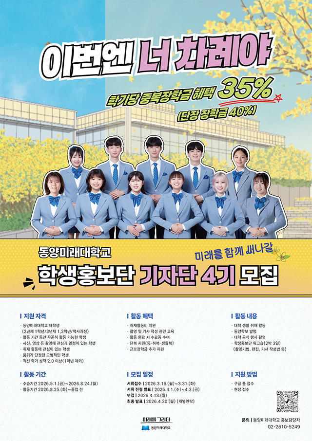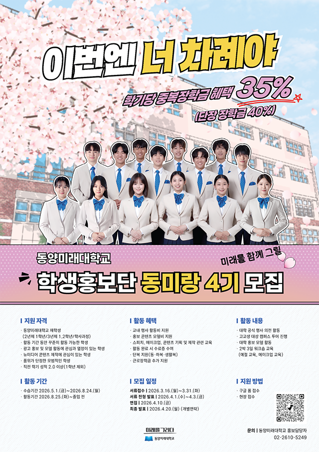 문의: 02-2610-5249 동양미래대학교 홍보담당자