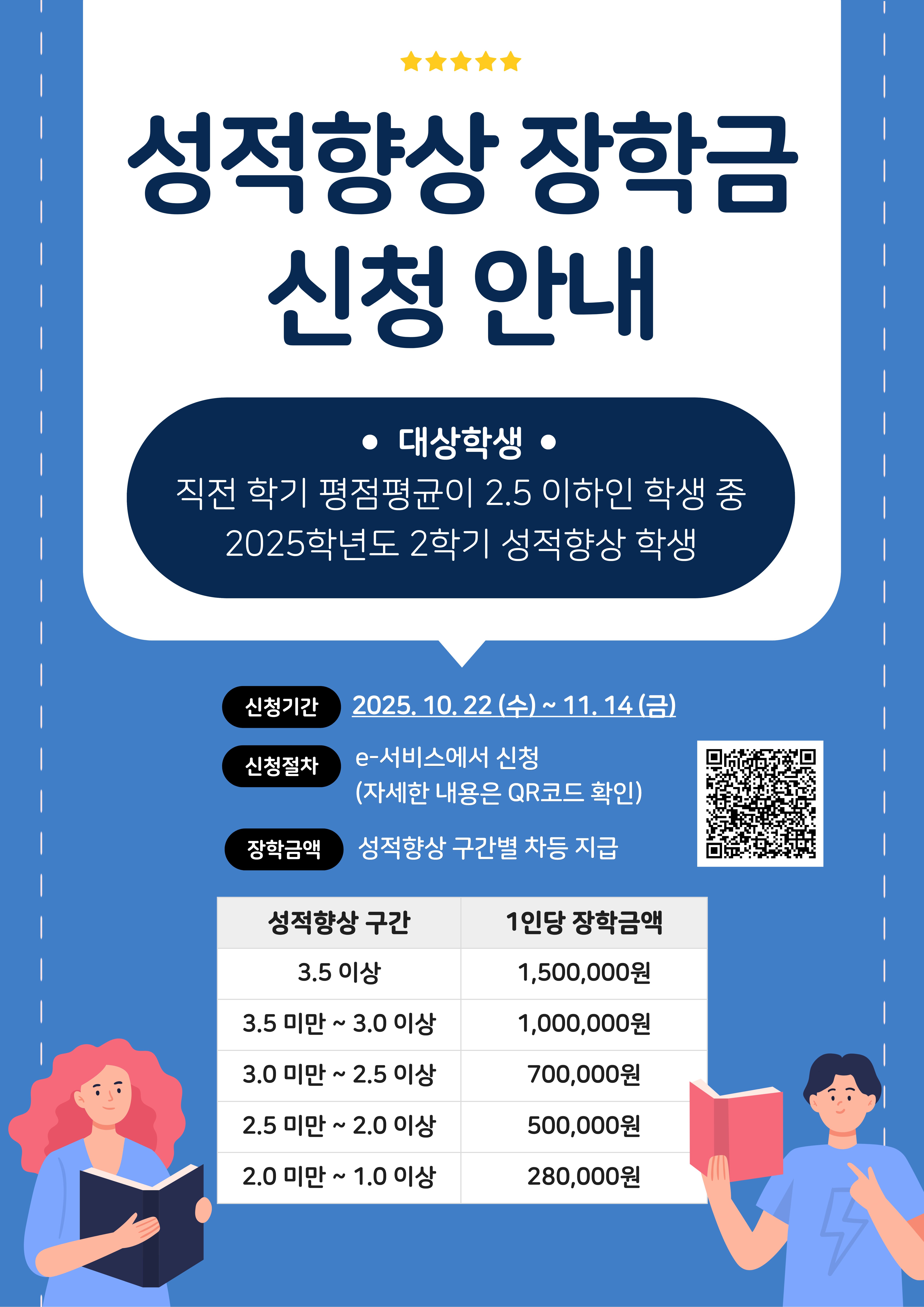 [교내장학] 2025학년도 2학기 성적향상 장학금 관련 안내