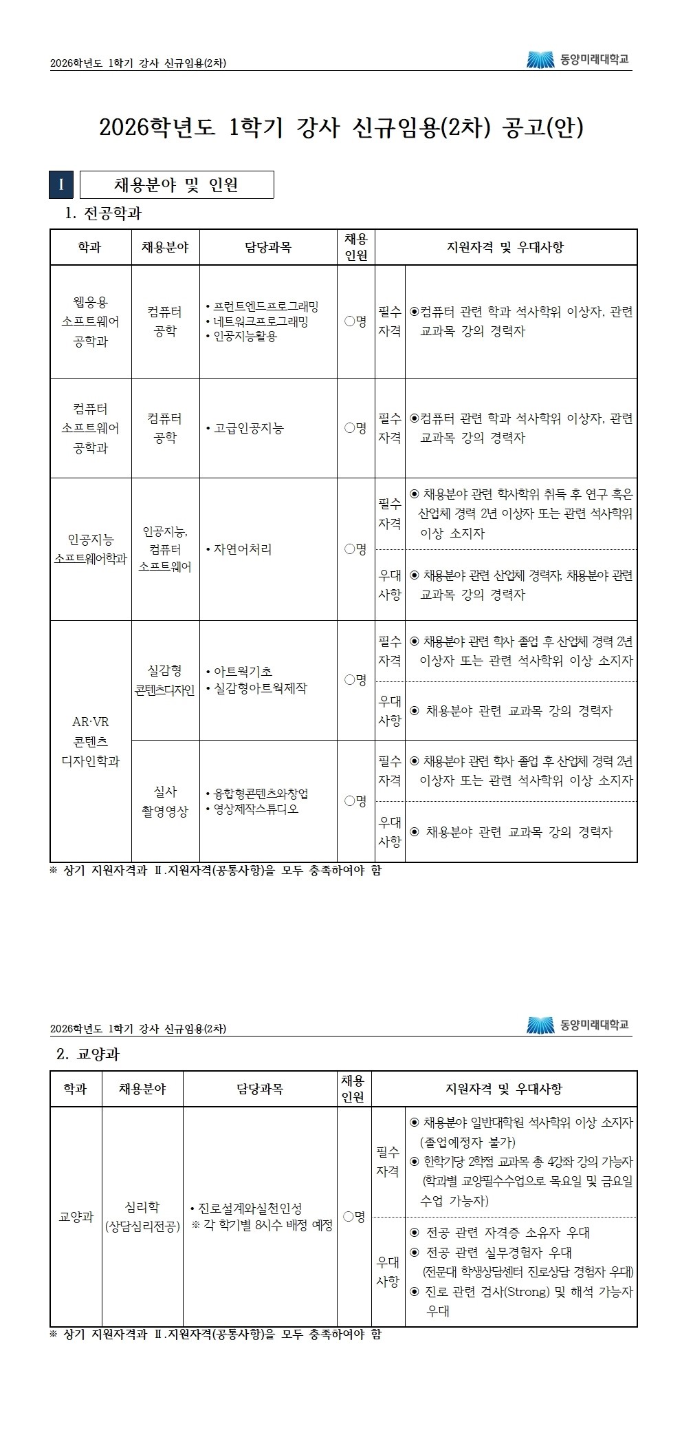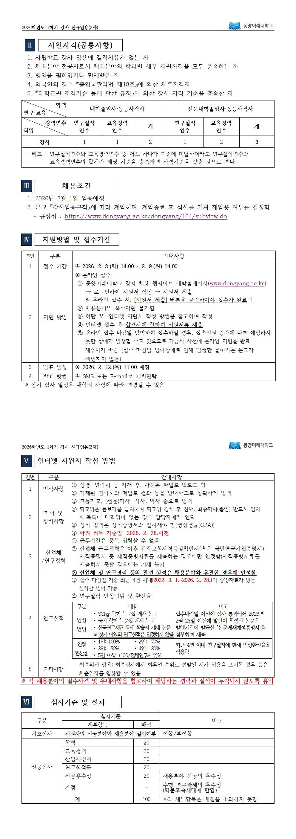 [강사채용] 2026학년도 1학기 강사 신규채용(2차) 공고